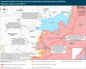 Mashovets rapporterade också att ukrainska styrkor upprätthåller positioner i Tsvitkove (nordväst om Hulyaipole), Krynychne och Staroukrainka (båda väster om Hulyaipole) i områden där ISW tidigare bedömde att ryska styrkor avancerade in. Geolokaliserad film som publicerades den 5 mars indikerar också att ukrainska styrkor nyligen avancerade nordost om Andriivka (sydväst om Oleksandrivka). ISW har också förfinat sin bedömning av ryska framryckningar inom Hulyaipole, då Mashovets också rapporterade att ukrainska styrkor upprätthåller positioner i centrala Hulyaipole.